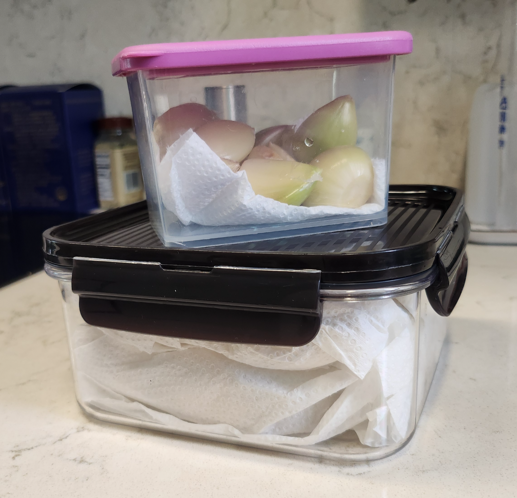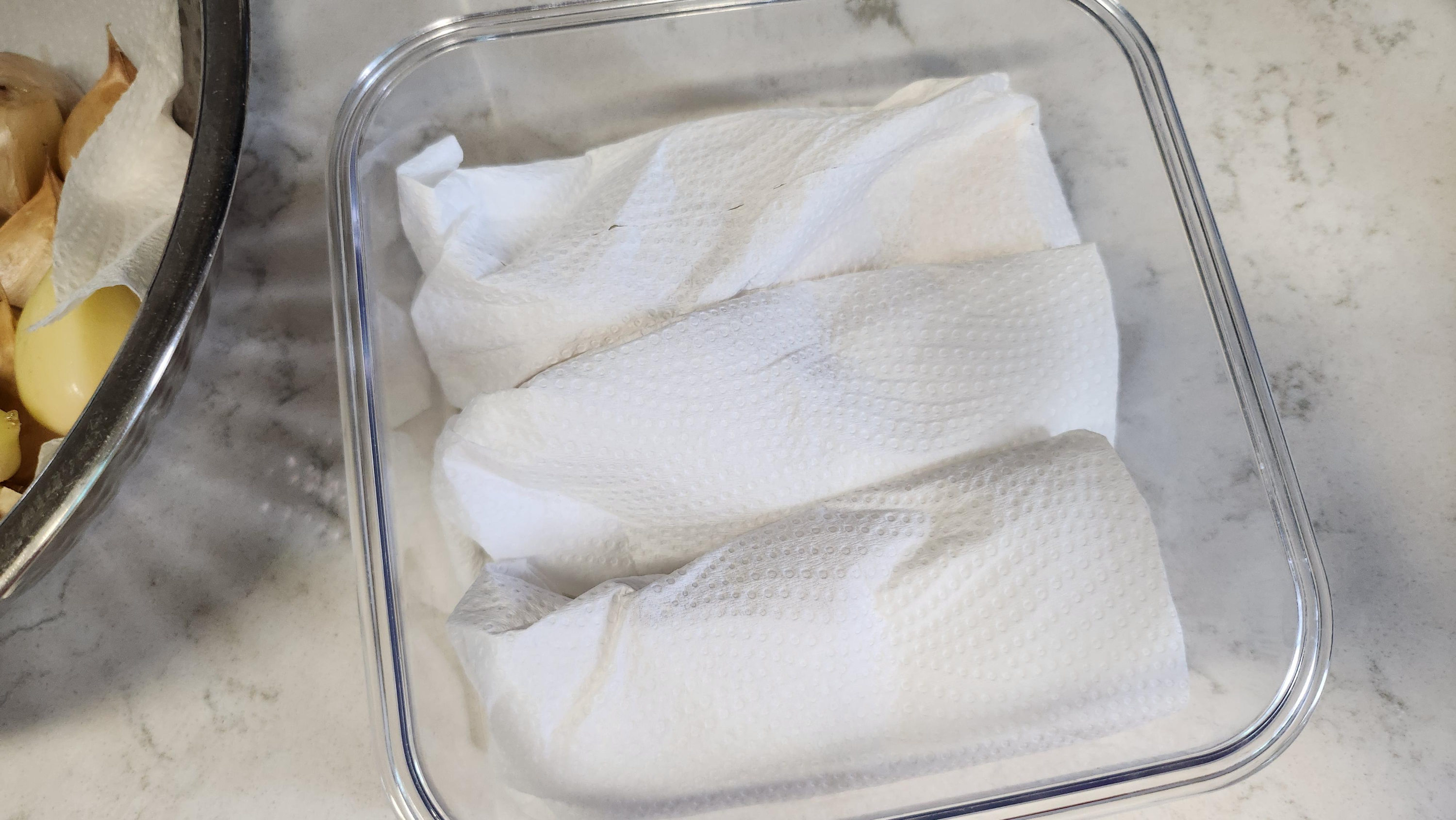 일주일안에 소비가 가능한 통마늘은 껍질을 다 깐후 키친타월을 한 겹 깐후에 냉장보관하셔도 좋습니다.