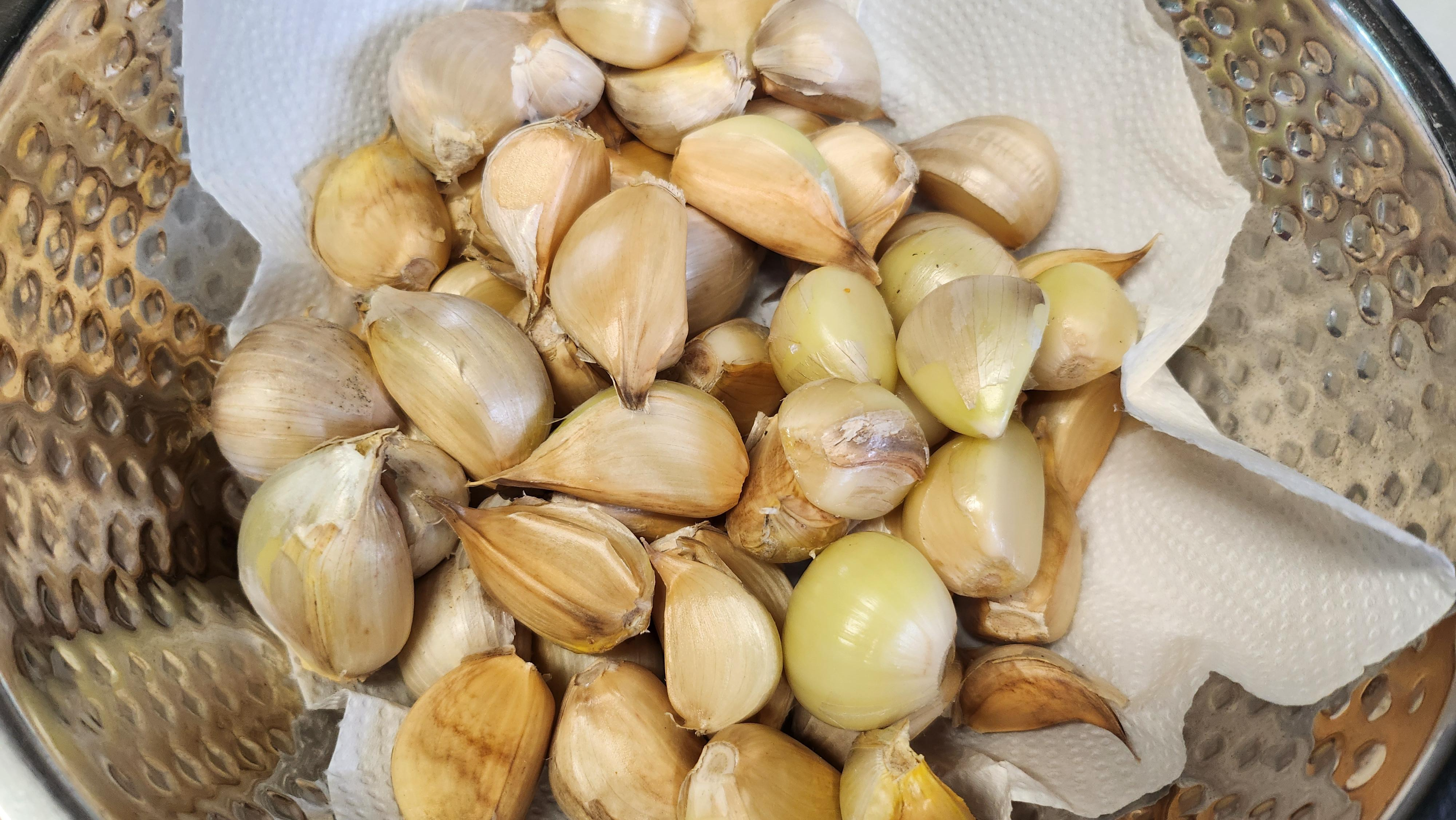 양이 많을 경우에는 신선도를 오래도록 유지하기가 어렵기 때문에 마늘을 한겹정도만 남기고 껍질을 까서 냉장 보관을 하시면 좋습니다.